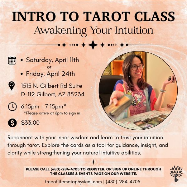 This foundational tarot class is designed to help you reconnect with your inner wisdom and build a trusting relationship with your intuition. Tarot is more than memorizing card meanings—it’s a powerful tool for receiving guidance, insight, and clarity from within and beyond.